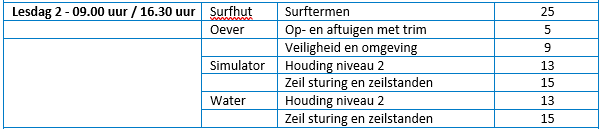 | Zaterdag | 09-05 | Opleiding windsurfen gevorderd (2) | Grootwater |